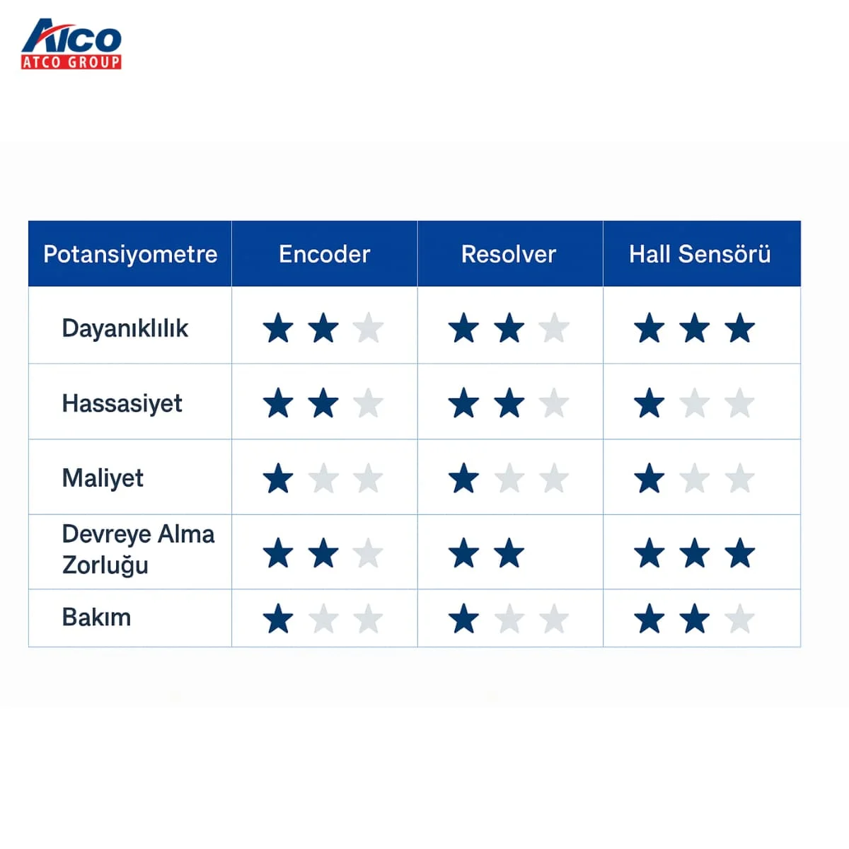 Hassasiyet ve tekrarlanabilirlik öncelikse encoder, maliyet ve basitlik öncelikse potansiyometre öne çıkar. Zorlu saha koşullarında temassız/manyetik çözümler de mantıklı olabilir.