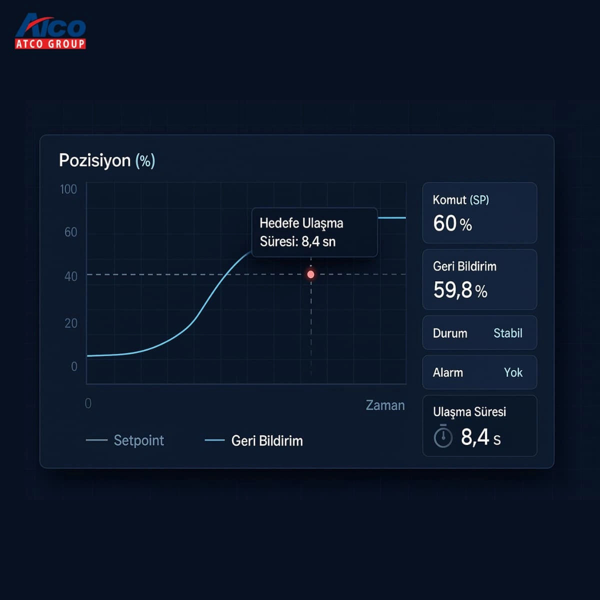 Konum geri bildirim, aktüatörün/vananın gerçek pozisyonunu PLC/SCADA’ya iletir. Böylece sistem yalnızca komut vermez, komutun yerine gelip gelmediğini doğrular; arıza, takılma ve sapmaları erken yakalar.