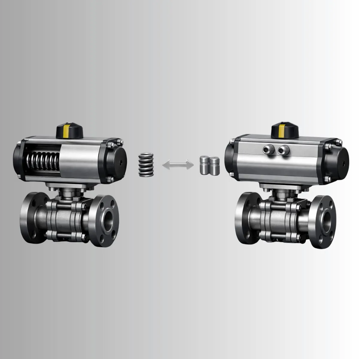Diğer temel sınıflandırma çalışma prensibine göre yapılır: çift etkili (double acting) ve yay dönüşlü (spring return). Çift etkili aktüatörlerde hareketin iki yönü de basınçlı hava ile sağlanır; yani açma da kapama da havayla olur. Bu tip, hızlı çevrim ve yüksek kontrol ihtiyacı olan hatlarda çok tercih edilir. Yay dönüşlü aktüatörlerde ise bir yön hava ile yapılırken, geri dönüş yay kuvveti ile gerçekleşir. Bu tipin en büyük avantajı, enerji kesildiğinde veya hava düştüğünde güvenli pozisyona dönebilmesidir; bu yüzden emniyet gerektiren proseslerde yay dönüşlü aktüatörler sık kullanılır. Bakım açısından kritik fark şudur: Yay dönüşlü sistemlerde yay paketi zamanla yorulur, karakteristiği değişir ve “kapanmama / yavaş dönüş / yarım dönüş” gibi belirtiler daha sık görülür. Çift etkili sistemlerde ise iki odada da sızdırmazlık, valf yönlendirmesi ve hat debisi daha baskın arıza kaynaklarıdır.