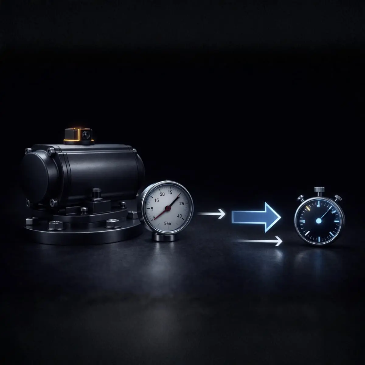 Üçüncü parametre çevrim süresidir ve bu metrik, saha için en uygulanabilir olanıdır. Aynı koşullarda (aynı basınç, aynı yük), aktüatörün açma ve kapama süreleri kronometreyle veya PLC loglarıyla kaydedilebilir. Burada değerli olan tek ölçüm değil, kıyaslamadır: geçen ay 1.2 saniyeydi, bu ay 1.6 saniyeye çıktıysa; sistem yavaş yavaş bozuluyor demektir. Bu bozulma çoğu zaman FRL tıkanması, egzoz kirliliği, artan kaçak veya sızdırmazlık sürtünmesiyle ilişkilidir. Bu trendi yakaladığında, arıza yaşanmadan önce planlı müdahale ile işi çözersin.